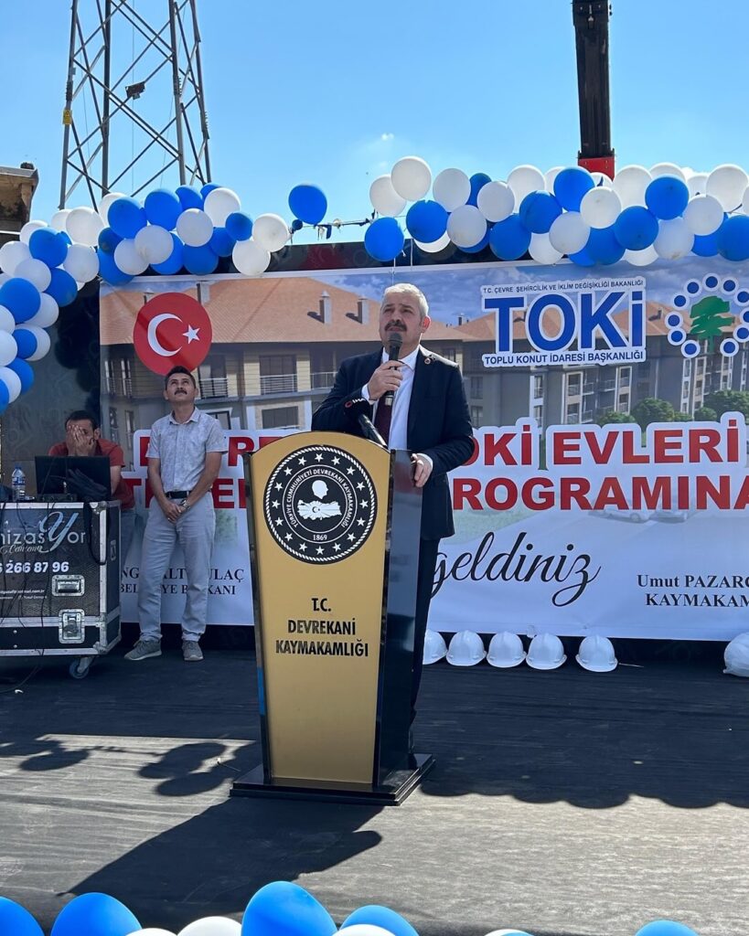 İlçemize kazandırılan TOKİ Konutlarının temel atma programını bugün büyük bir gururla gerçekleştirmiş bulunuyoruz. 11.000 m² alan üzerine inşa edilecek, 4 bloktan oluşacak ve toplamda 80 daireden meydana gelecek projemiz, yaklaşık 7-8 ay içerisinde tamamlanarak hemşehrilerimizin hizmetine sunulacaktır.
